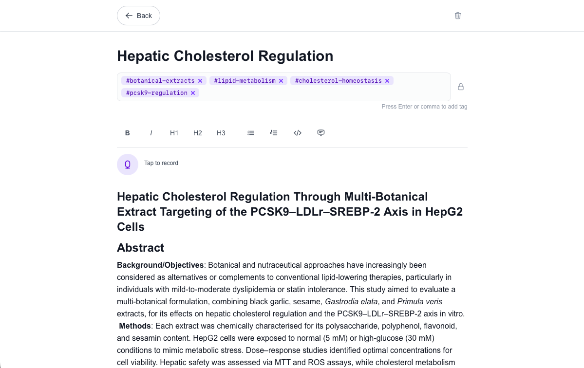 Transcribed, tagged, and indexed automatically. Your note is searchable before you blink.